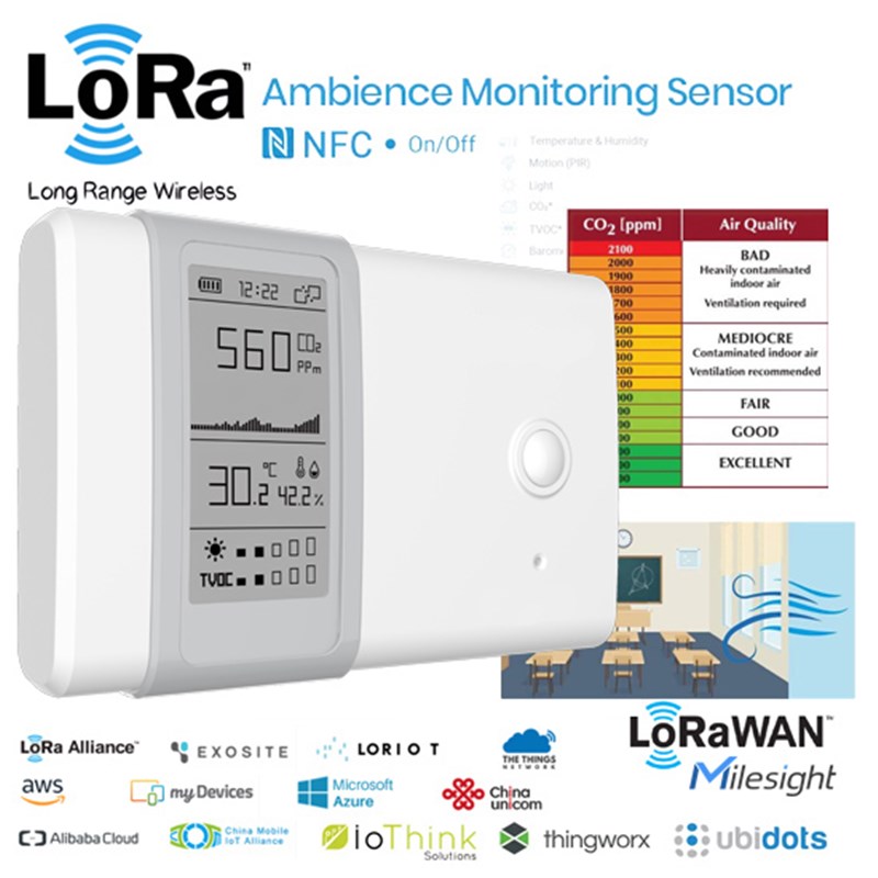 Integrado con múltiples sensores como humedad, temperatura, CO2, luminosidad, presión barométrica, etcVisualización mediante pantalla de tinta electrónicaPilas AA estándarHasta 1 año de trabajo sin cambiar las pilasEquipado con NFC y puerto tipo C para fácil configuraciónCompatible con los Gateways LoRaWAN® estándar y Network ServersGestión rápida y sencilla con Milesight IoT Cloud solution