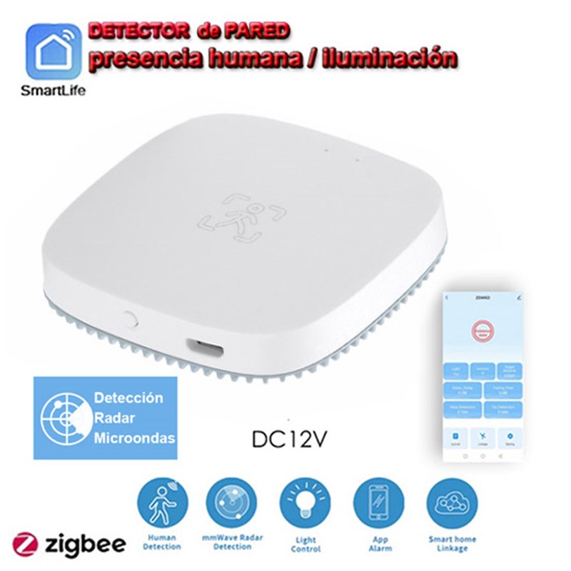 Sensor ultrasensible de detección humana e iluminación de pared, Zigbee SmartLife