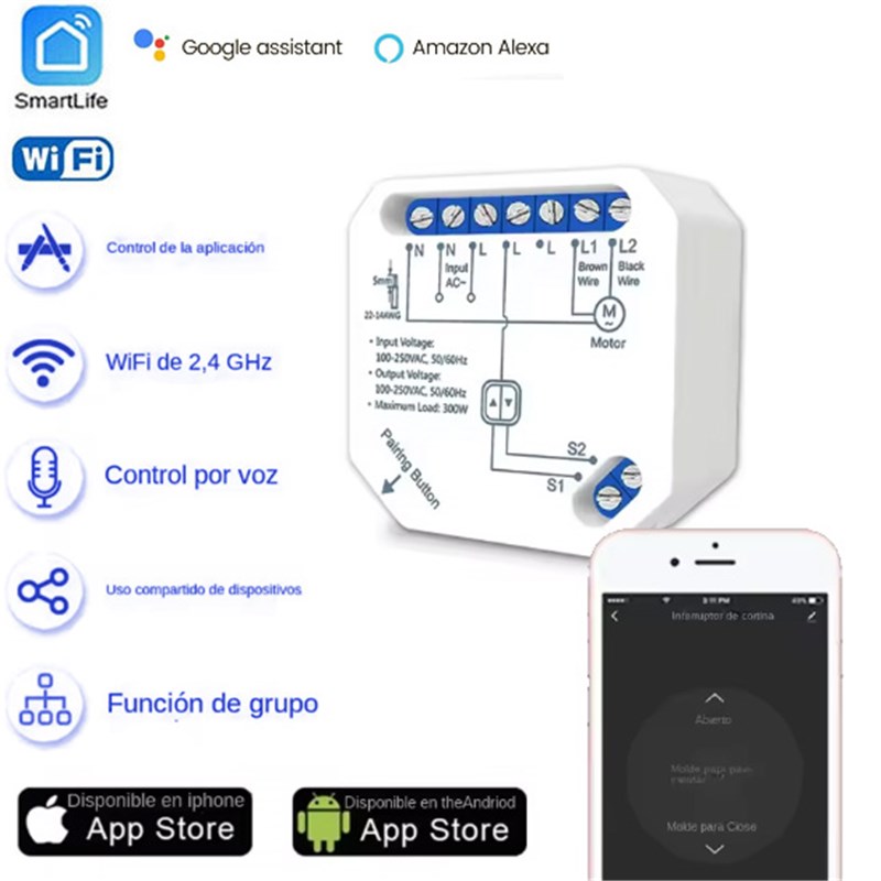 -Sin cables, sin límite, ahorre el costo de mano de obra para instalar un interruptor de persiana o estore de motor tubular.-Módulo de tamaño pequeño, fácil de instalar.-Nombre de la aplicación: Smart Life/Tuya.-Control remoto de la aplicación móvil, sincronización de la aplicación, soporte tanto iOS como Android.-Abrir/cerrar automáticamente de acuerdo con el horario que defina.-Control de voz compatible con Google casa Amazon Echo Alexa