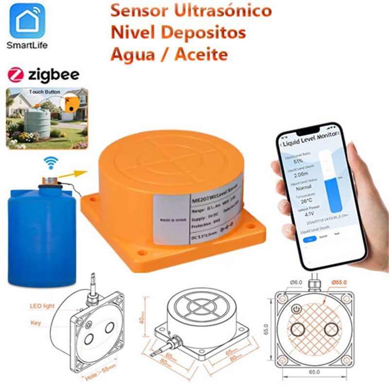 Sensor ultrasónico Zigbee de nivel de depositos de agua / aceite SmartLife