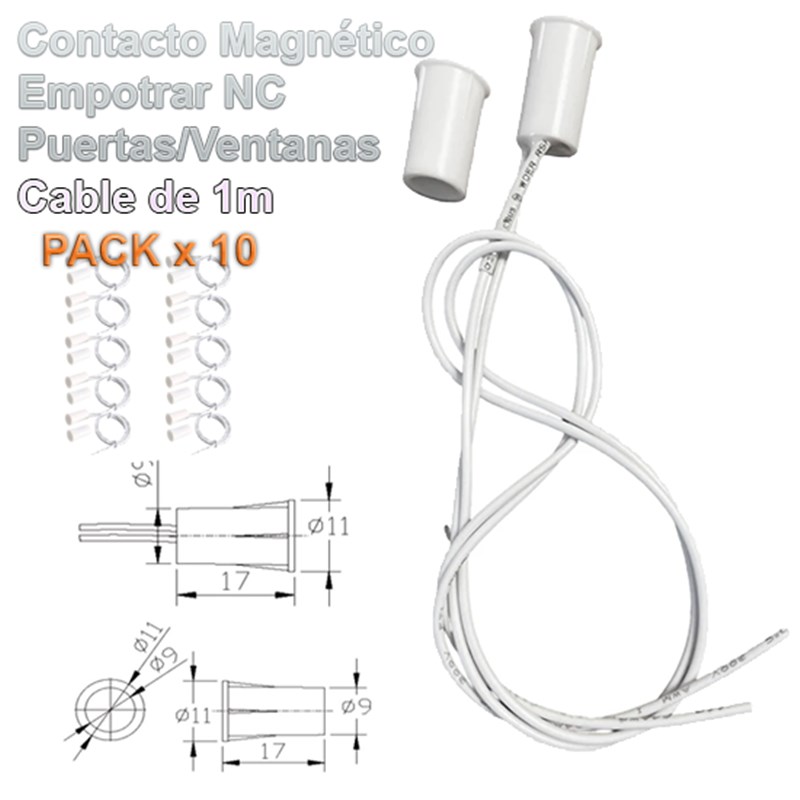 PACK 10 x Contactos Magnéticos empotrables NC, cable 1m