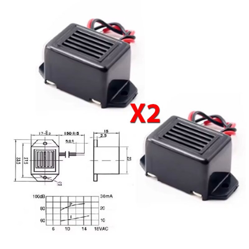 2 x Zumbadores alarma, buzzer activo 12V